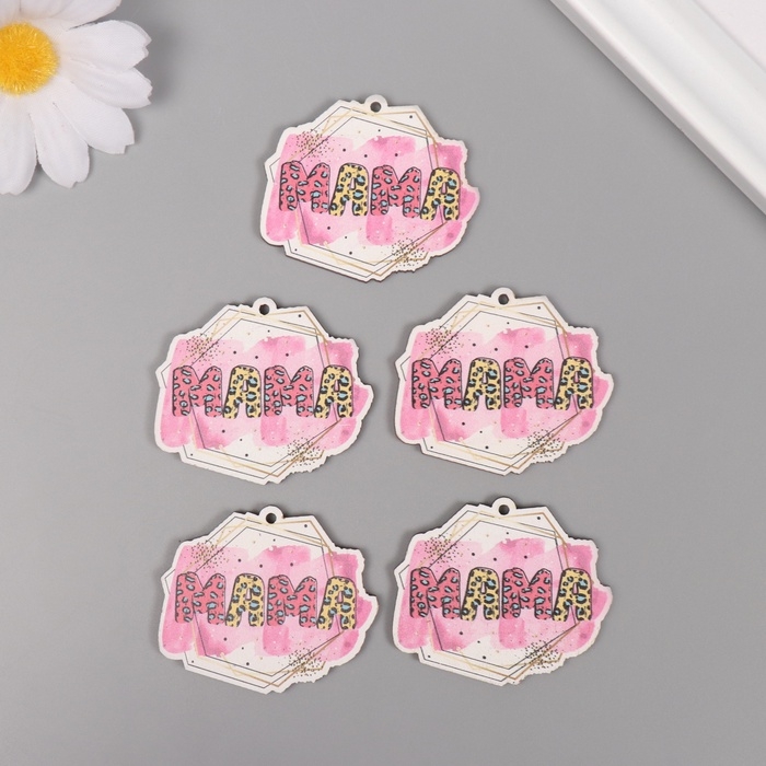 Декор для творчества дерево "Геометрический узор - мама" набор 5 шт 3,8х4,4х0,3 см