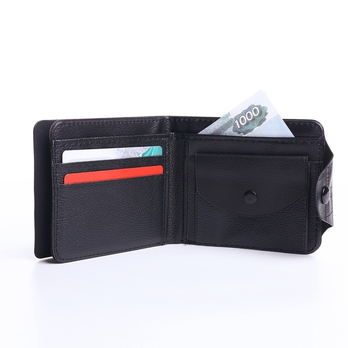 Портмоне мужское на магните, цвет чёрный