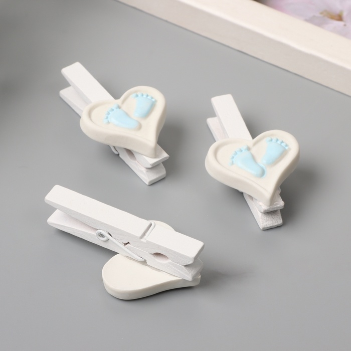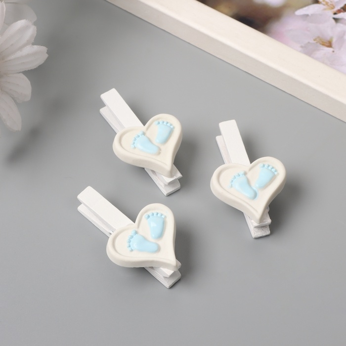 Декор для творчества дерево "Прищепка. Сердце с ножками" голубой набор 3 шт 1,7х3х5 см