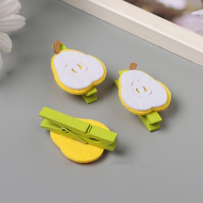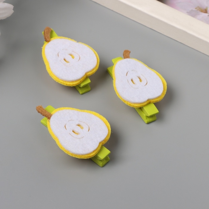 Декор для творчества дерево, фетр "Прищепка. Половинка груши" набор 3 шт 1,3х3х4,8 см