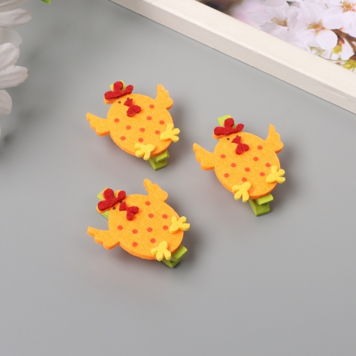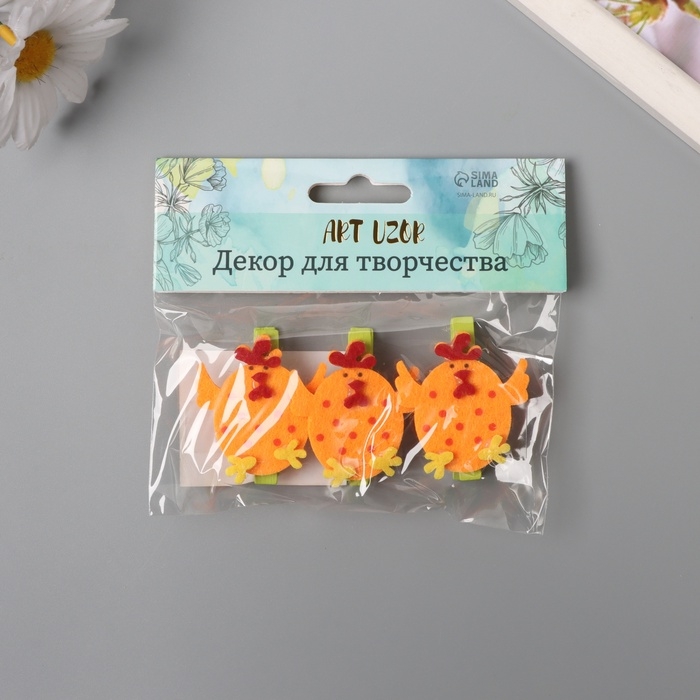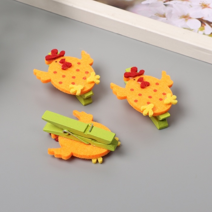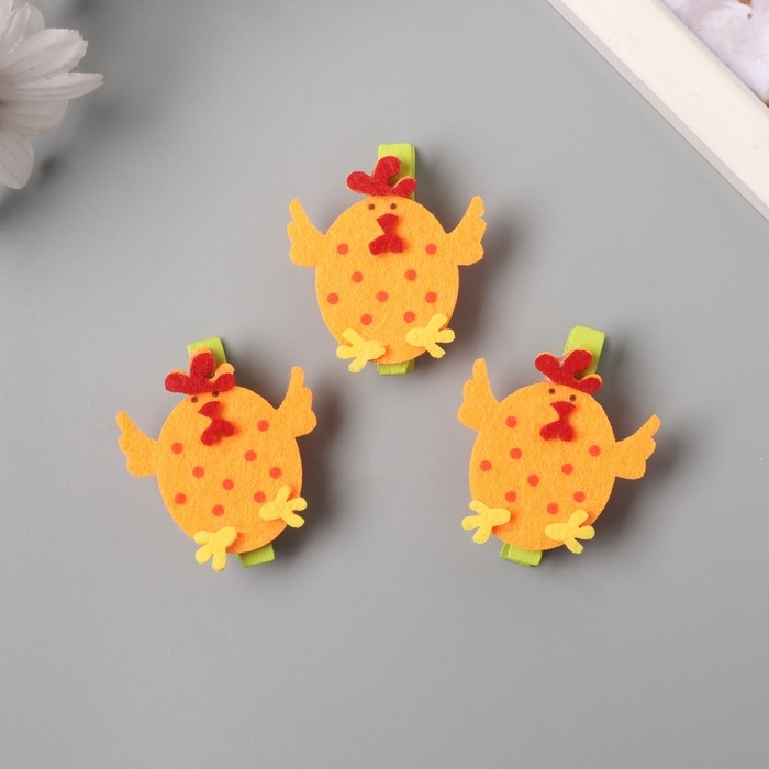 Декор для творчества дерево, фетр "Прищепка. Петушок-яйцо" набор 3 шт 1,8х4х4,8 см