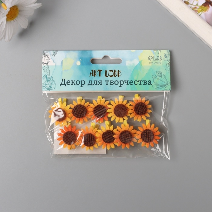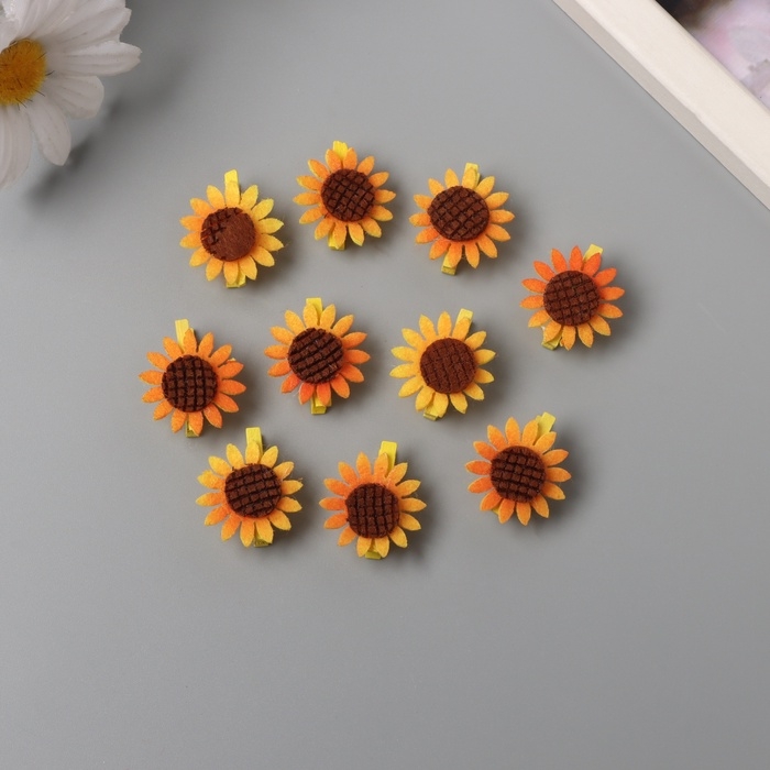 Декор для творчества дерево, фетр "Прищепка. Подсолнух" набор 10 шт 1,5х2,5х2,8 см