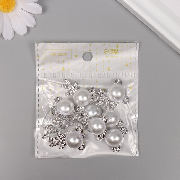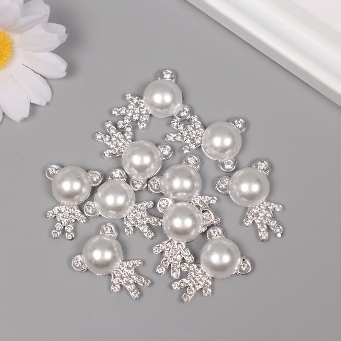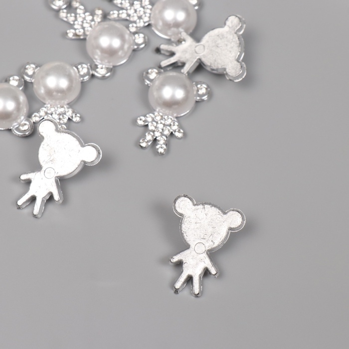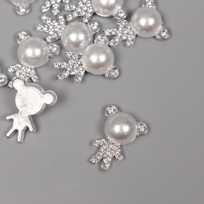 Декор для творчества пластик "Мишка со стразами" серебро набор 10 шт 2,5х2х1 см