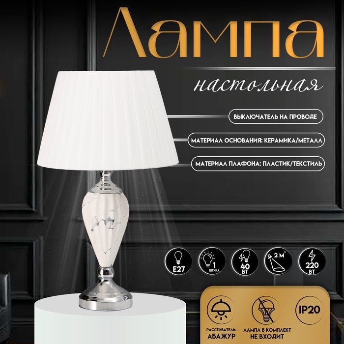 Настольная лампа с абажуром RISALUX «Эдвин», Е27, 40 Вт, 30×30×50 см
