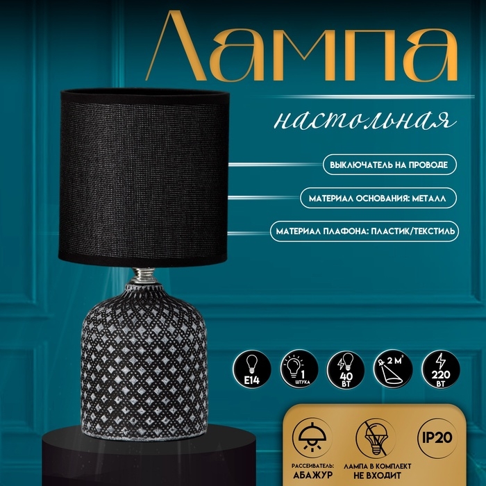 Настольная лампа с абажуром RISALUX «Рицио», Е14, 40 Вт, чёрно-белый, 13×13×27 см