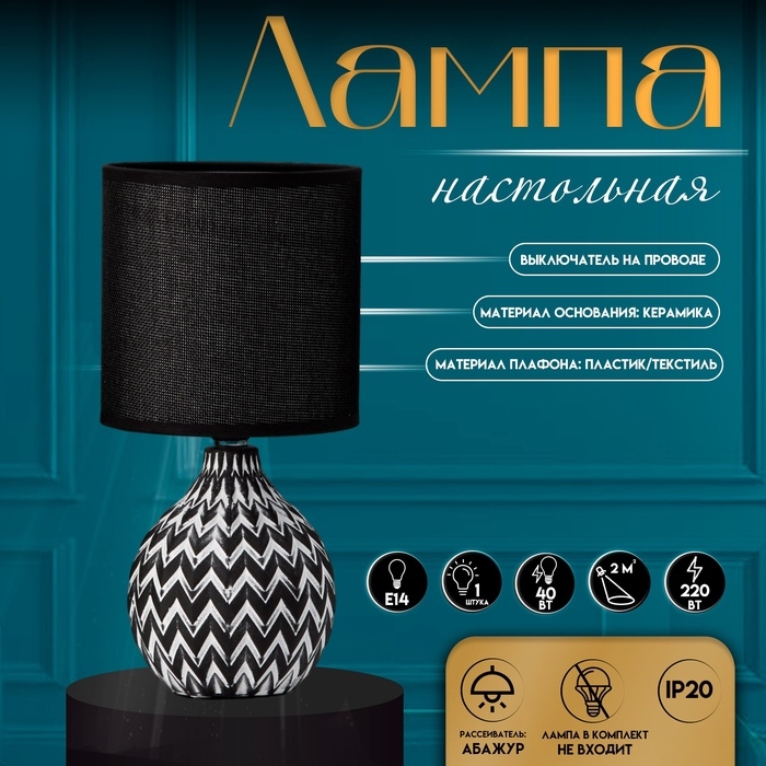 Настольная лампа с абажуром RISALUX «Руби», Е14, 40 Вт, бело-чёрный, 13×13×27 см
