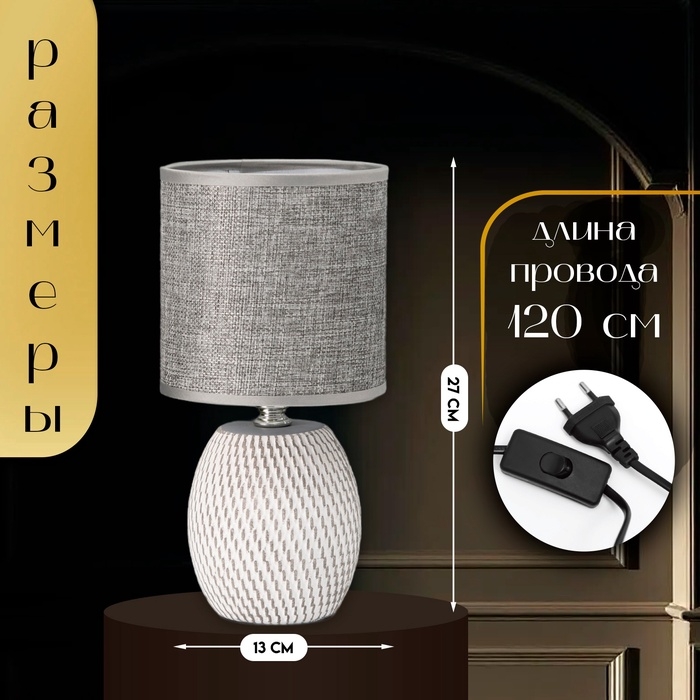 Настольная лампа с абажуром RISALUX «Наоми», Е14, 40 Вт, серо-белый, 13×13×27 см