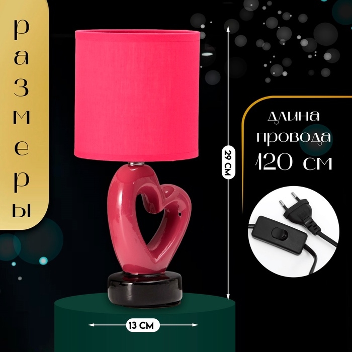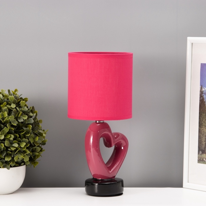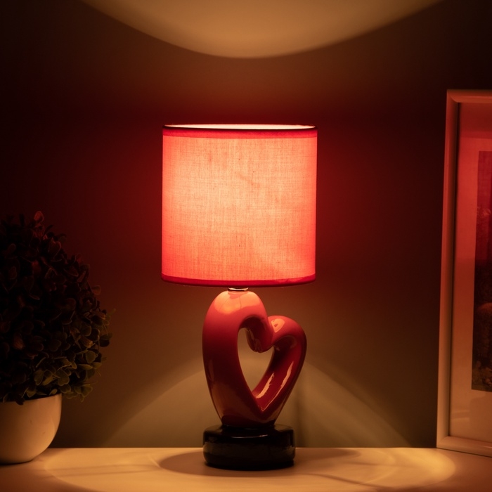 Настольная лампа с абажуром RISALUX «Сердце», Е14, 40 Вт, красный, фигурное основание, 13×13×29 см