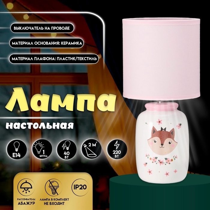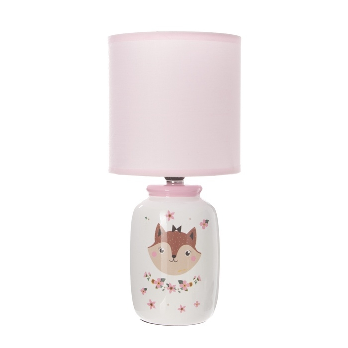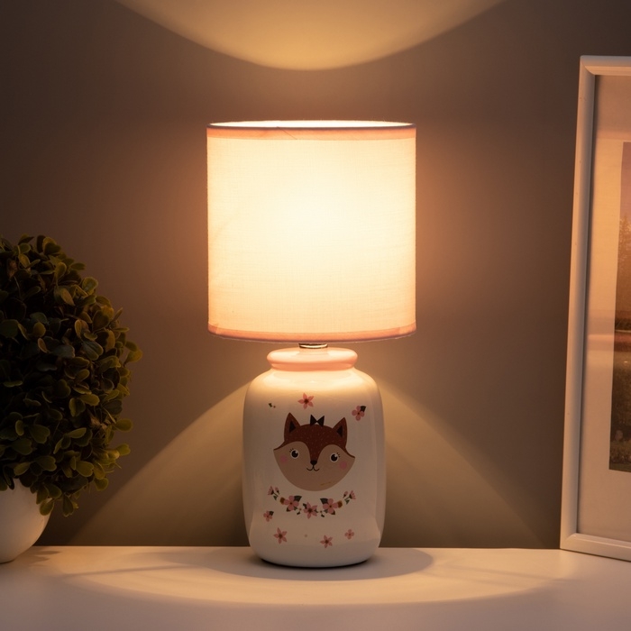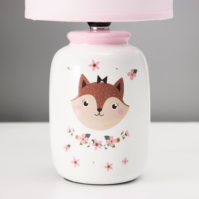 Настольная лампа с абажуром RISALUX «Киса» детская, Е14, 40 Вт, бело-розовый, 13×13×27 см