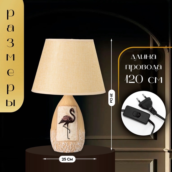 Настольная лампа с абажуром RISALUX «Фламинго», Е14, 40 Вт, бежевый, 25×25×39 см