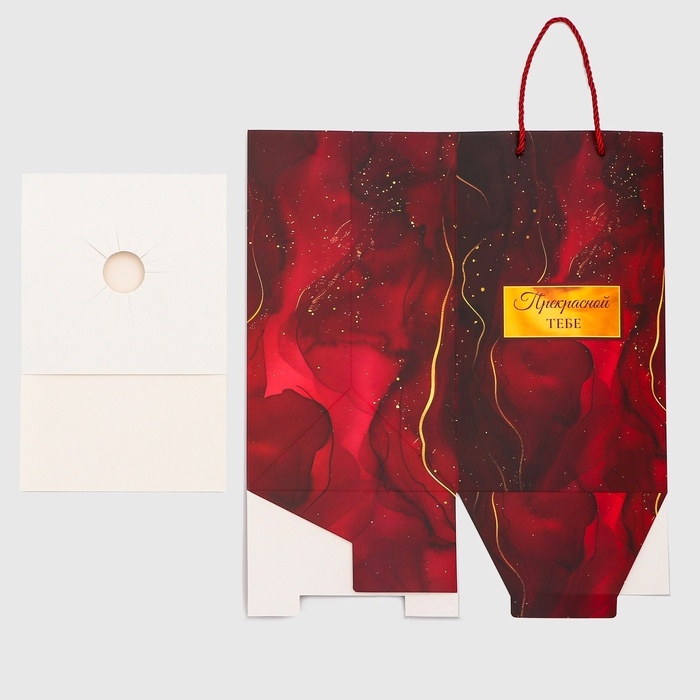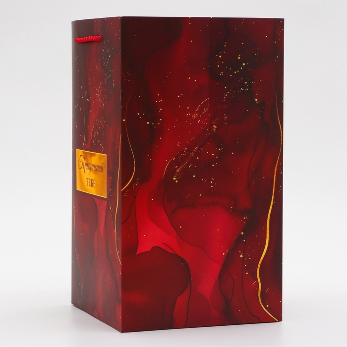 Пакет для цветов, ручка цепь, "Красный", с золотым тиснением, 15 х 10,5 х 10 см
