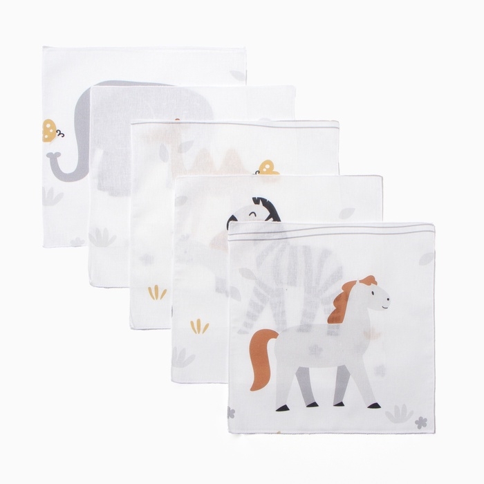 Набор платочков Крошка Я Funny Zoo 30*30 см-5 шт, бязь, 100 % хлопок