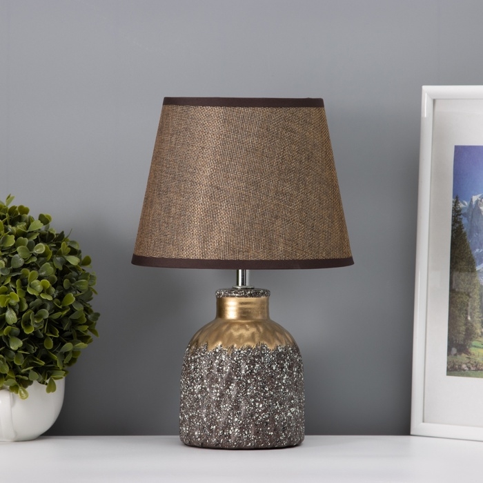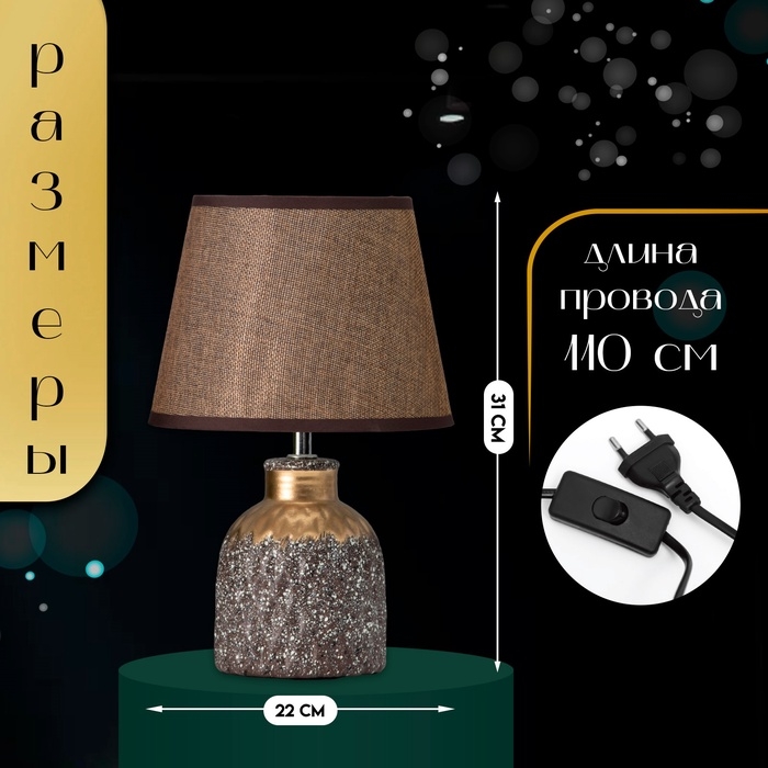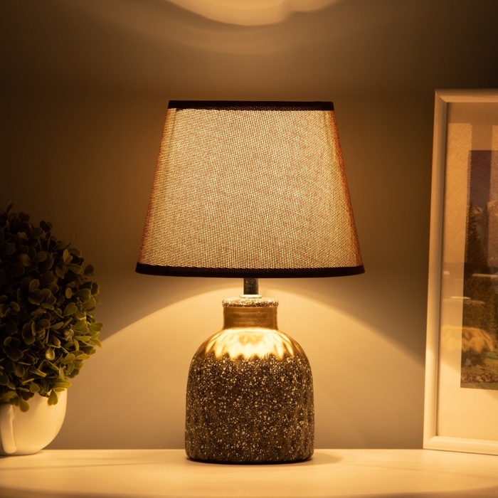 Настольная лампа с абажуром RISALUX «Овация», 1×Е14, 40 Вт, кофейный/золото, 22×22×31 см