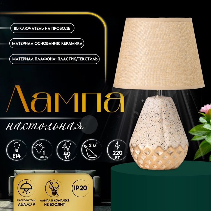 Настольная лампа с абажуром RISALUX «Виктория», 1×Е14, 40 Вт, бежевый, 20×20×32 см