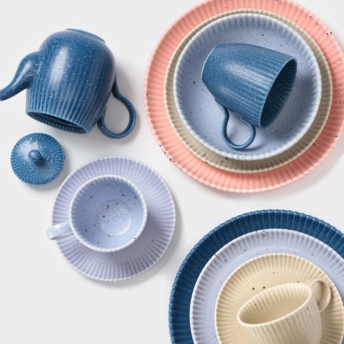 - Стильный дизайн: бежевый цвет и рельефная текстура без рисунка делает эту чайную пару универсальной, позволяя ей легко вписаться в любой интерьер, от классического до современного.