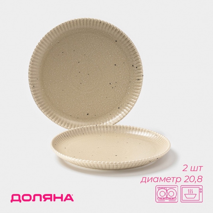 Тарелки Доляна «Коралл», d=20,8 см, набор 2 шт, фарфор, бежевые