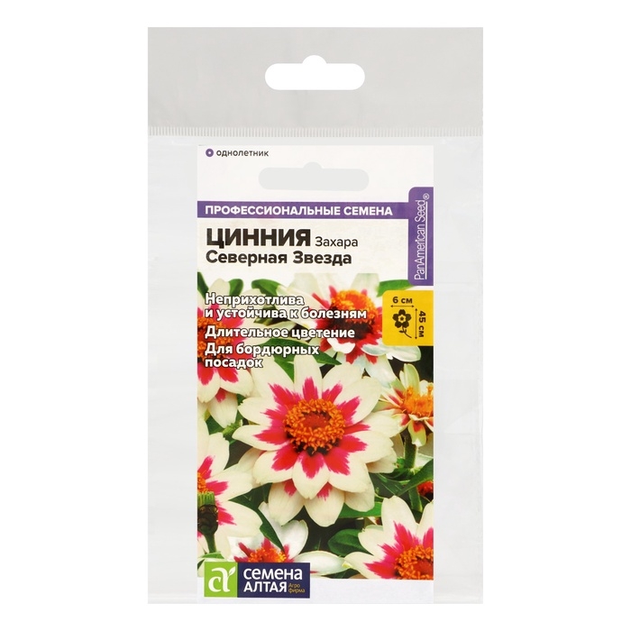 Супервыносливая серия карликовых цинний нового поколения для любительского и профессионального озеленения, не требующая специального ухода! Кустики компактные, высотой 30-45 см, хорошо ветвятся. Цветки очень яркие, диаметром 5-6 см, необычной окраски, напоминающей звезду: белой по краям лепестков и малиновой у основания. Отличительные признаки сортосерии: насыщенные и уникальные окраски цветков, длительный период цветения, повышенная толерантность к грибковым заболеваниям. Широко используется для оформления цветников, посадок в контейнеры и балконные ящики, для выращивания в вазонах и открытом грунте. Светолюбивое растение, отличается хорошей засухоустойчивостью. Предпочитает солнечные участки на рыхлых плодородных, хорошо дренированных почвах. Посевы на рассаду проводят в марте-апреле. Всходы появляются через 6-10 дней при температуре +21-23°С. Растения нормально развиваются при температуре +16-18°С. Высадка рассады в грунт в конце мая-июне, когда минует угроза заморозков. Посадочн