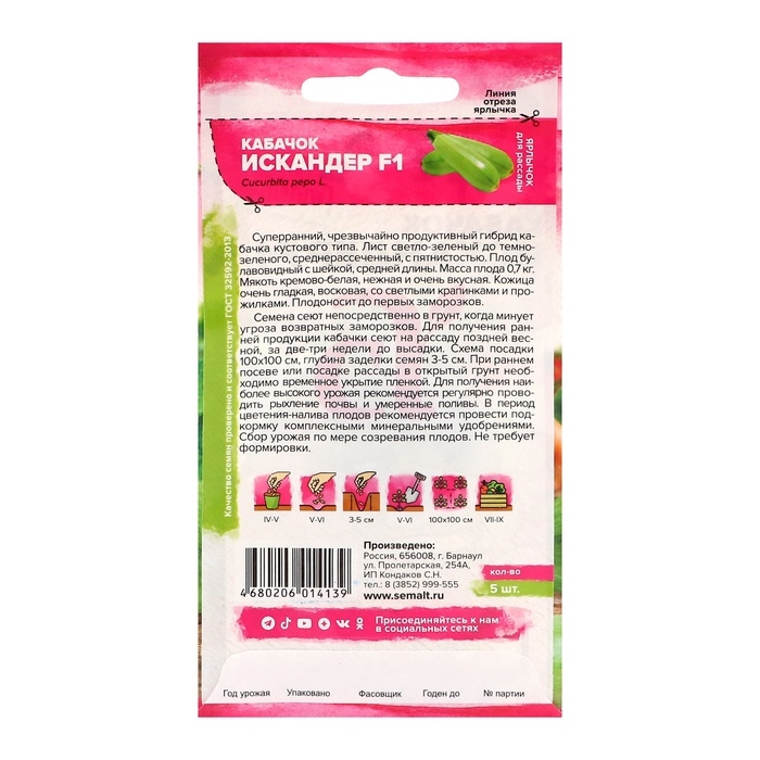 Семена Кабачок "Искандер", F1,набор 5 шт