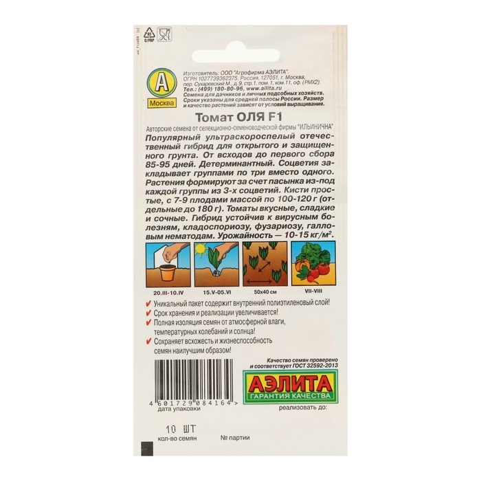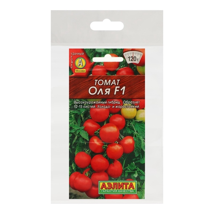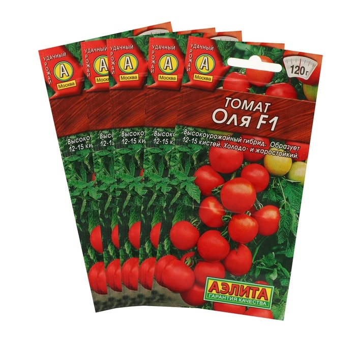 «Оля F1» — это ультраскороспелый отечественный гибрид, который подходит для открытого и защищённого грунта. Он жаро- и холодостойкий, стабильно завязывает плоды в условиях +7 °С ночью,+15 °С днём, не сбрасывая завязей. Не подвержен вирусным болезням, кладоспориозу, фузариозу и галловым нематодам. Супердетерминантное растение не требует пасынкования. Период от всходов до плодоношения составляет 85–95 дней. Урожайность — 10–15 кгм². Куст достигает до 1,2 м в высоту и образует по 12–15 кистей с 7–9 плодами массой 120–180 г. Томаты имеют сладкий и сочный вкус. Используются в свежем виде и для консервирования. Посев: на рассаду с обязательной пикировкой в фазе 1–2 настоящих листьев. Высаживайте растения в возрасте 45–55 дней по 4–5 шт. на 1 м².