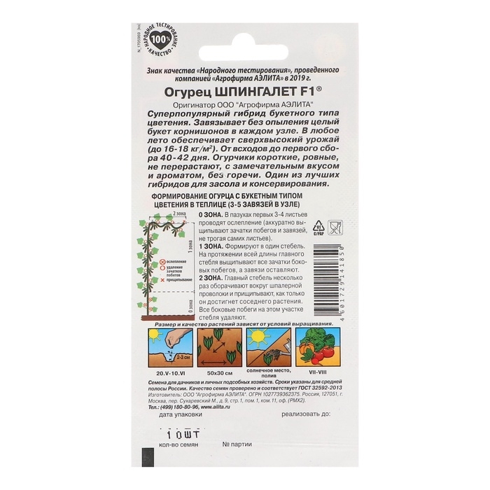 Агрономический срок годности семян составляет 7 лет, что дает возможность планировать посевы на долгосрочную перспективу. Подготовьте свой участок к выращиванию огурцов и наслаждайтесь свежестью и ароматом собственного урожая.