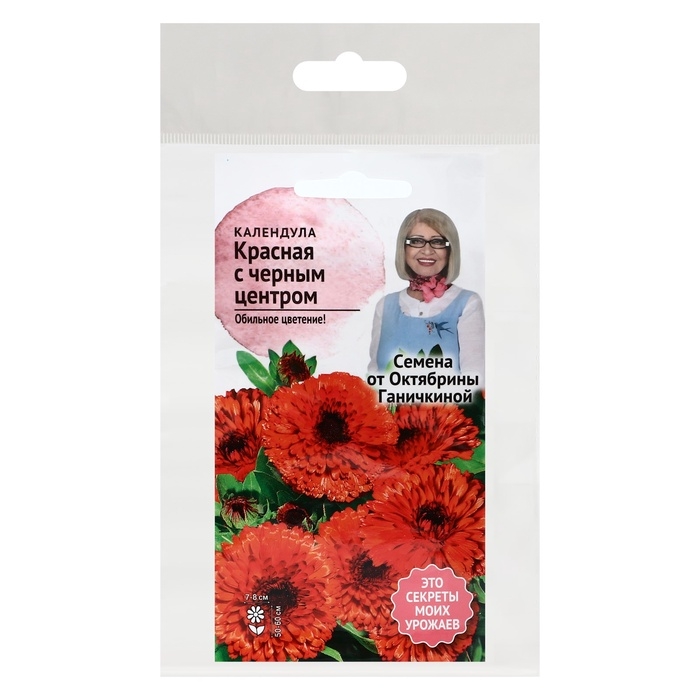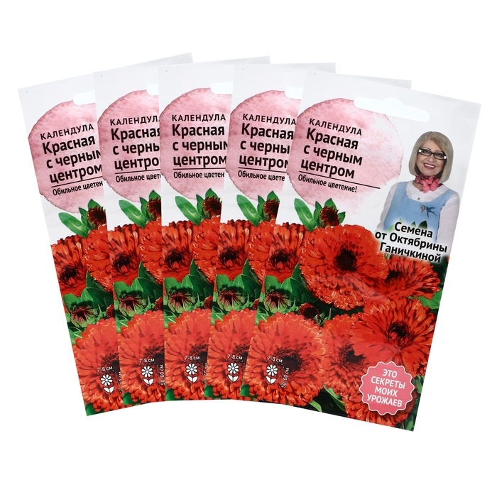 Семена Цветов Календула "Красная с чёрным центром",набор 5 шт