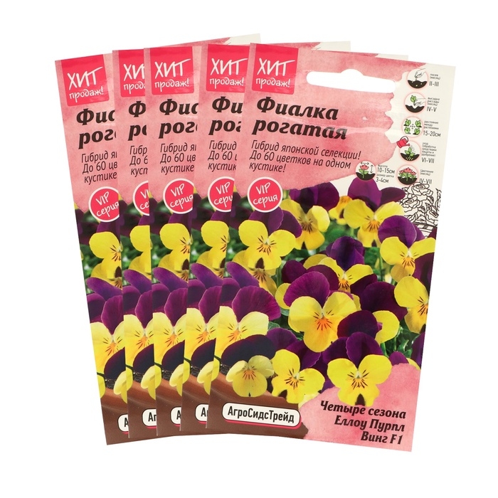 Семена Цветов Фиалка "Еллоу Пурпл Винг",набор 5 шт