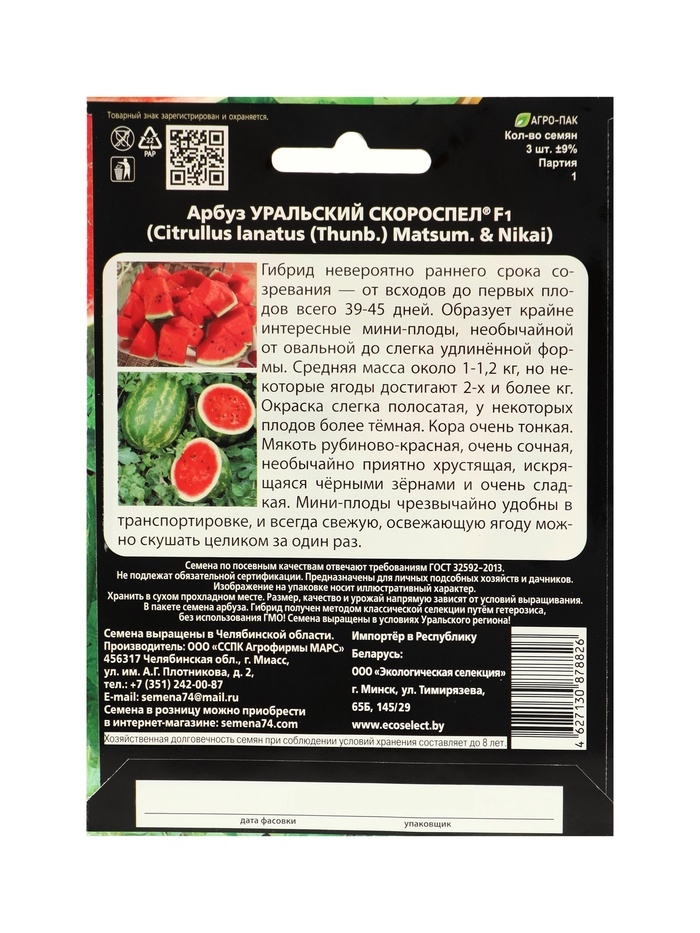 Семена Арбуз "Уральский Скороспел", F1, 3 шт