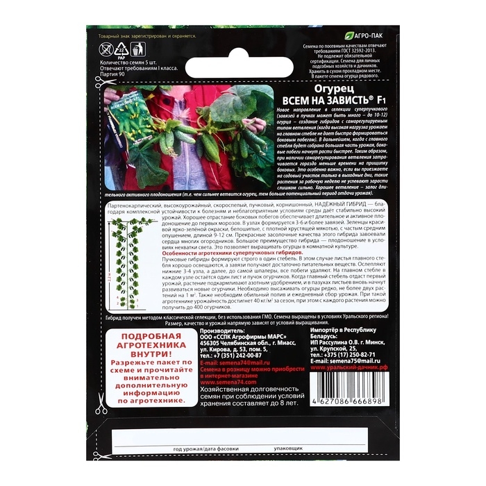 Семена огурца "Великолепная пятерка", F1,набор 5 шт