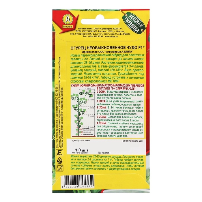 Семена Огурец "Необыкновенное чудо" F1, раннеспелый, партенокарпический,набор 5 шт