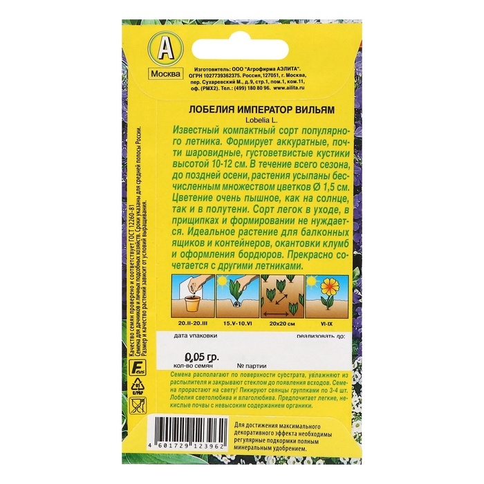 Выберите семена лобелии «Император Вильям» для создания уюта и красоты в вашем саду, и пусть лето станет волшебным!