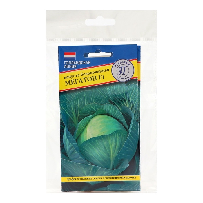 Мегатон F1 - средний гибрид белокочанной капусты, период созревания 102 дня от высадки рассады. Благодаря сильной корневой системе легко переносит засухи. Средний качественный высокопродуктивный пластичный гибрид капусты белокочанной для взращивания через рассаду и непосредственным посевом в открытый грунт. Сберегает товарный вид в поле, даже при недостатке влаги, очень урожайный. Кочаны округло-приплюснутой формы, светло-зеленого оттенка, имеют плотную идеально белую внутреннюю структуру, массой от 4 до 15 кг. Кочерыга короткая.