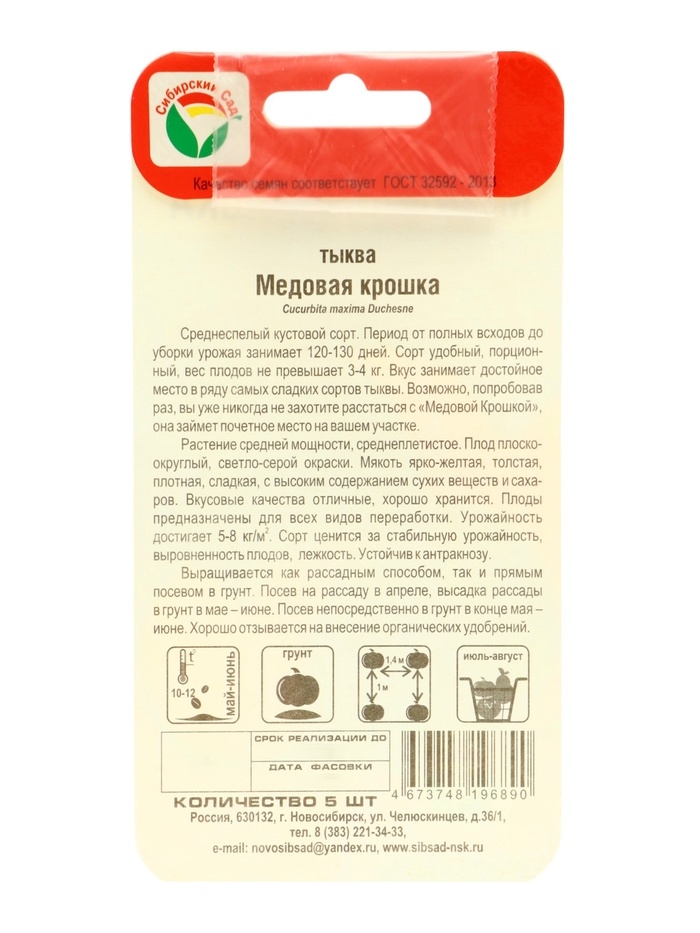 Семена Тыква "Медовая крошка", набор 5 шт