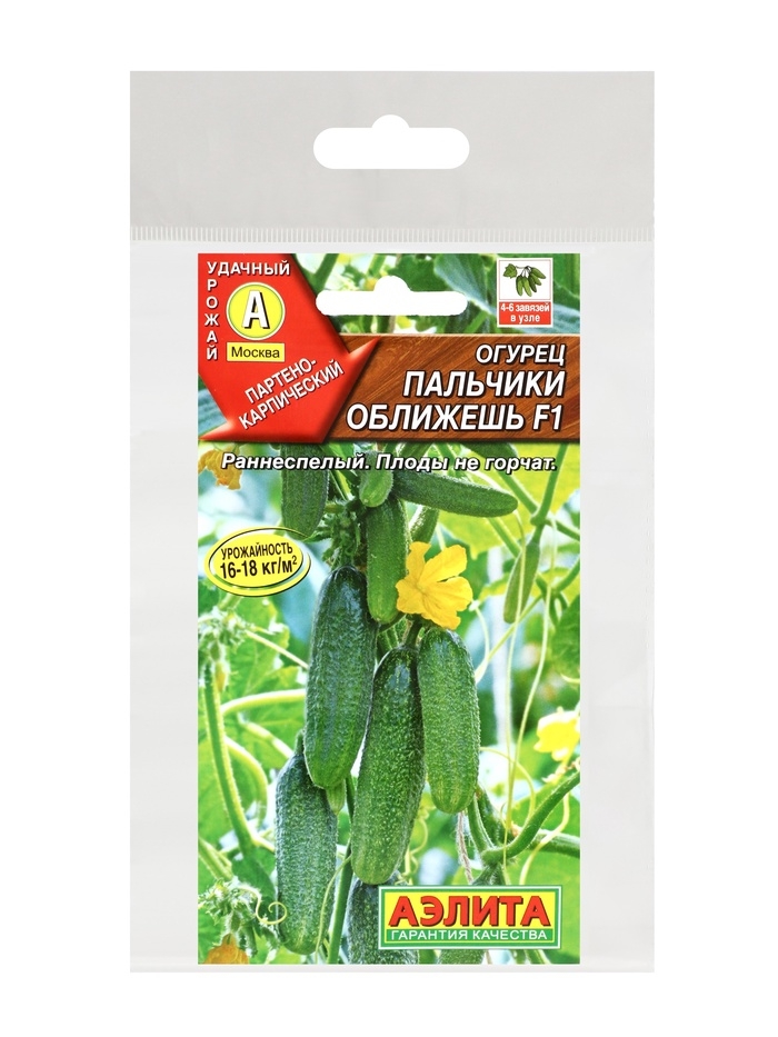 «Пальчики оближешь» — это высокоурожайный раннеспелый партенокарпический гибрид для выращивания в открытом грунте и под плёночными укрытиями. Техническая спелость наступает через 41–47 дней после всходов. Растения украшают цилиндрические мелкобугорчатые хрустящие огурцы длиной 10–11 см и массой 70–80 г. Сорт прекрасно подходит для консервирования и отличается высокой урожайностью и дружной отдачей плодов. h2>Посев h2>Рассадным способом. В грунт помещается через 20–30 дней. h2>Уход h2>Растениям требуются регулярные поливы, прополки, рыхления и подкормки. Сбор плодов должен проводиться каждые 2–3 дня.