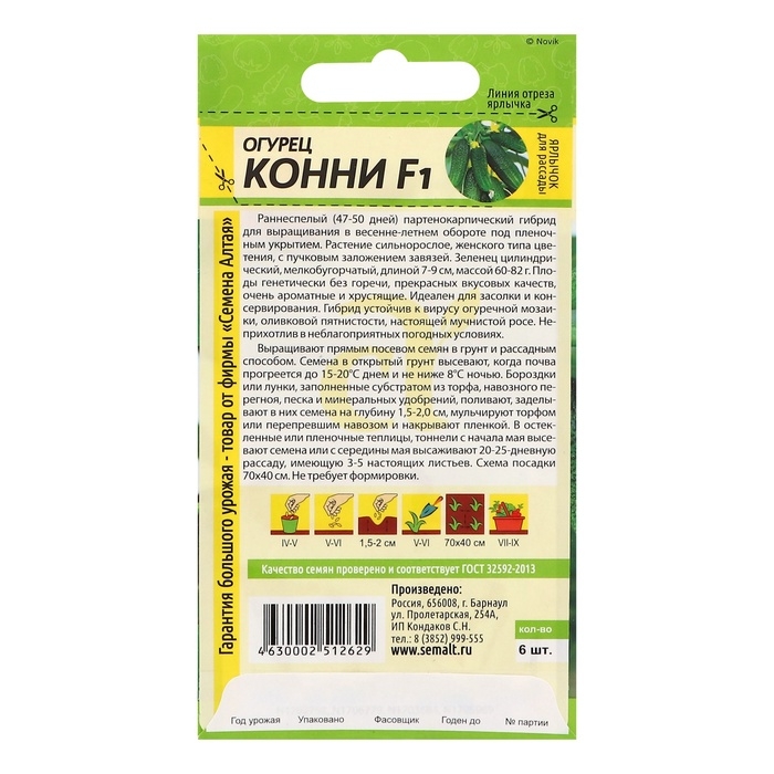 Семена Огурец "Конни", F1, Семена Алтая, набор 5 шт