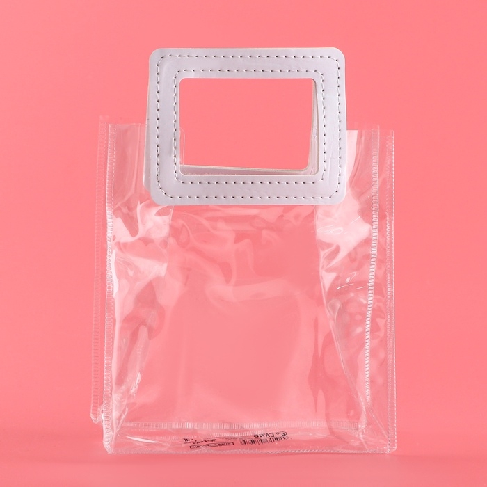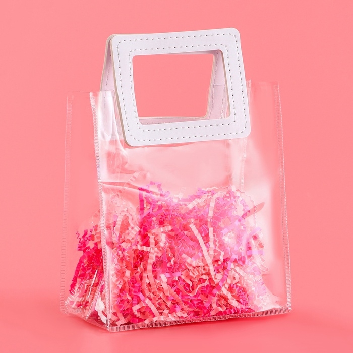 - Прозрачная сумочка с фигурной ручкой идеально подходит для различных видов подарков, начиная от косметики и заканчивая небольшими предметами интерьера.
