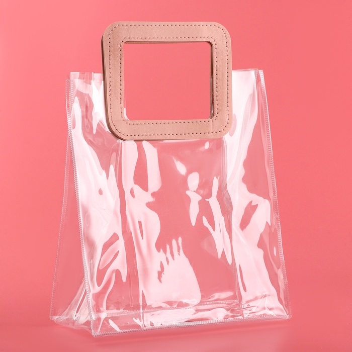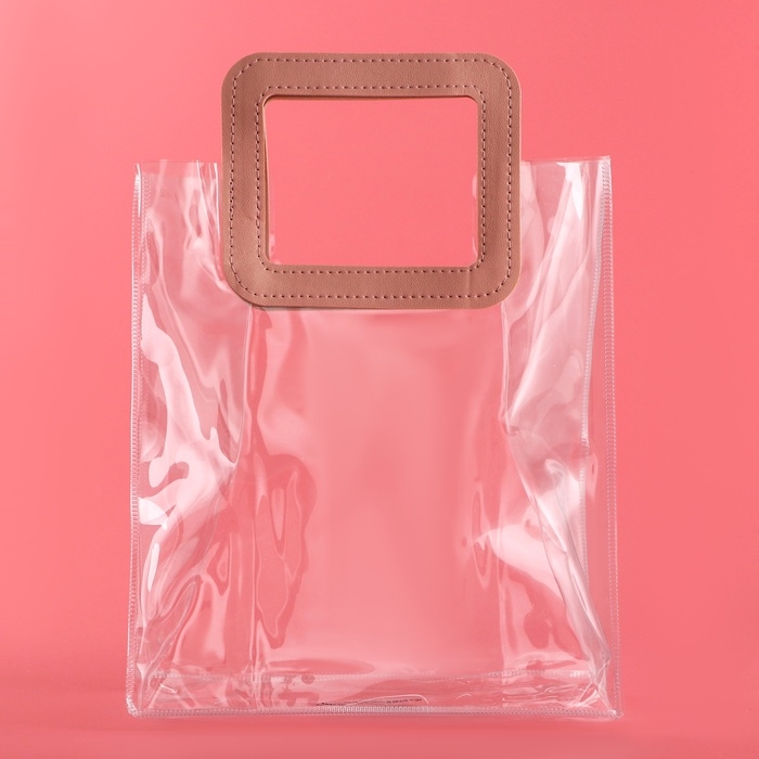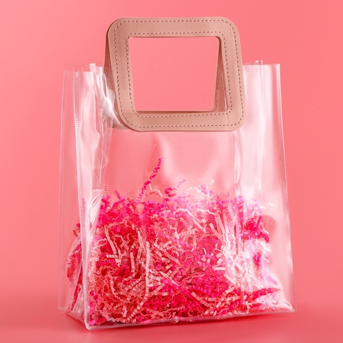 - Прозрачная сумочка с фигурной ручкой идеально подходит для различных видов подарков, начиная от косметики и заканчивая небольшими предметами интерьера.