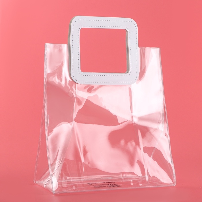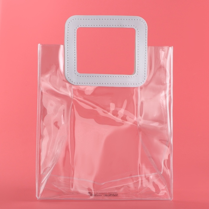 - Прозрачная сумочка с фигурной ручкой идеально подходит для различных видов подарков, начиная от косметики и заканчивая небольшими предметами интерьера.
