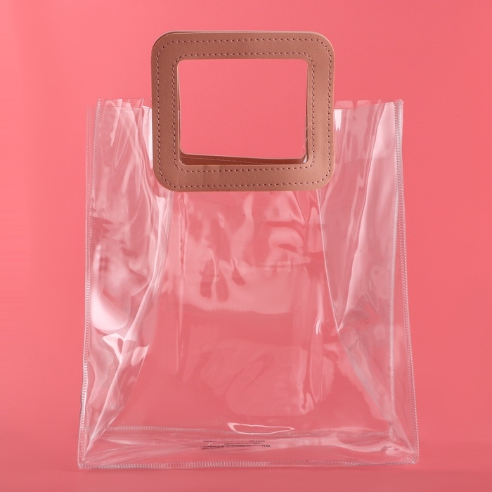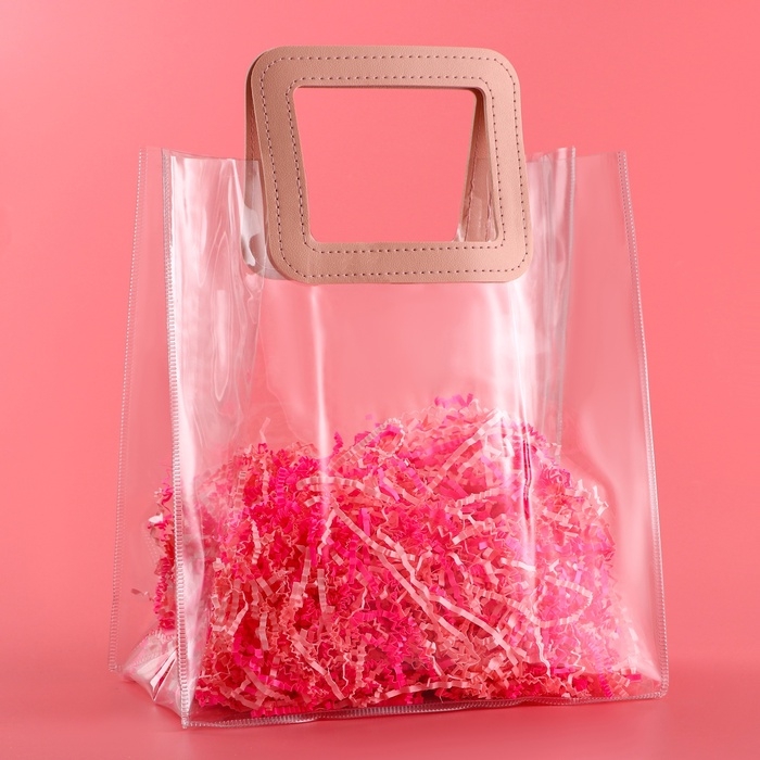 - Прозрачная сумочка с фигурной ручкой идеально подходит для различных видов подарков, начиная от косметики и заканчивая небольшими предметами интерьера.