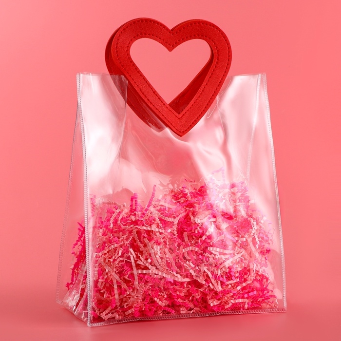 - Прозрачная сумочка с фигурной ручкой идеально подходит для различных видов подарков, начиная от косметики и заканчивая небольшими предметами интерьера.