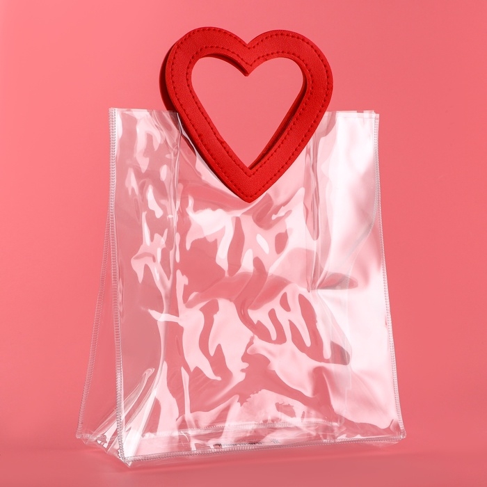 Этот подарочный пакет из ПВХ представляет собой прозрачную сумочку с фигурной ручкой, которая станет стильным и удобным способом упаковки вашего подарка. Прозрачный материал позволяет видеть содержимое, что добавляет элемент неожиданности и интриги, ведь сам подарок остается скрытым до последнего момента.