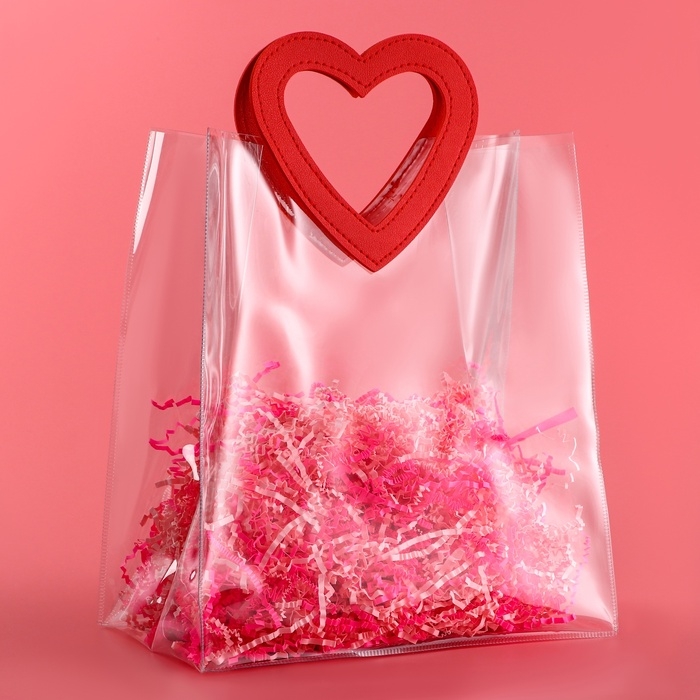 - Прозрачная сумочка с фигурной ручкой идеально подходит для различных видов подарков, начиная от косметики и заканчивая небольшими предметами интерьера.