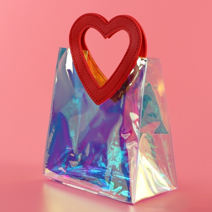 Пакет подарочный из ПВХ, красный, ирридисцентный, 20 х 18 х 10 см