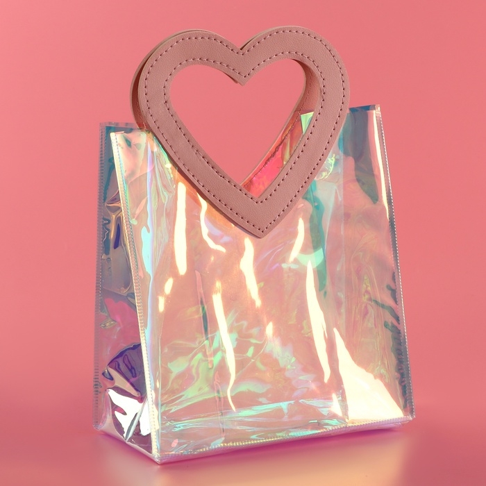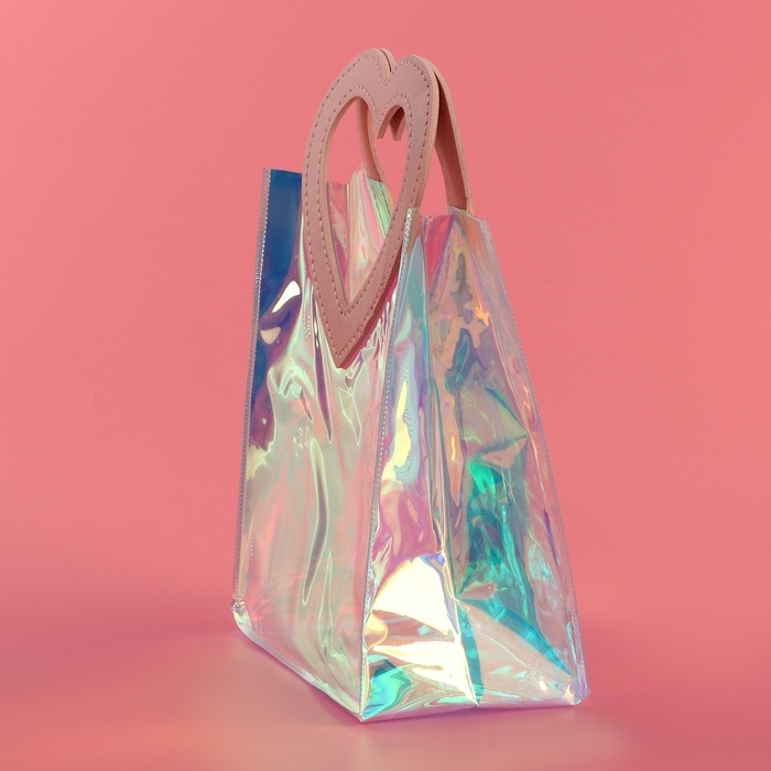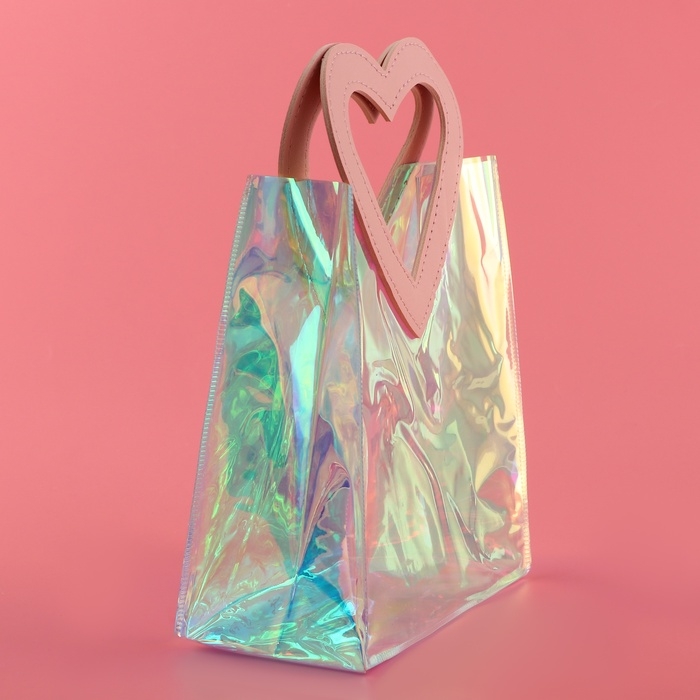 Пакет подарочный из ПВХ, розовый, ирридисцентный, 20 х 18 х 10 см