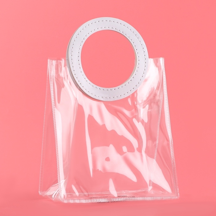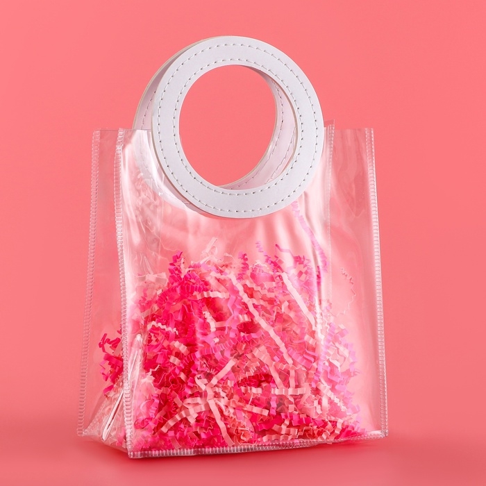- Прозрачная сумочка с фигурной ручкой идеально подходит для различных видов подарков, начиная от косметики и заканчивая небольшими предметами интерьера.