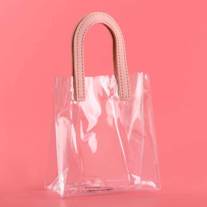 - Прозрачная сумочка с фигурной ручкой идеально подходит для различных видов подарков, начиная от косметики и заканчивая небольшими предметами интерьера.