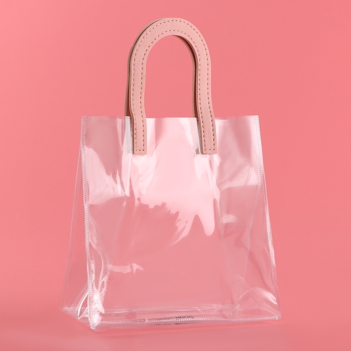 - Прозрачная сумочка с фигурной ручкой идеально подходит для различных видов подарков, начиная от косметики и заканчивая небольшими предметами интерьера.