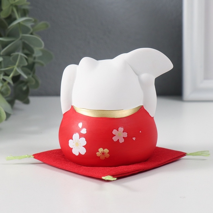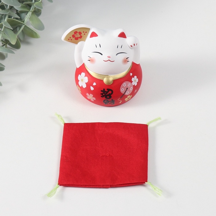 Сувенир керамика "Кот Манэки-нэко с веером" красный 8х8х8,5 см