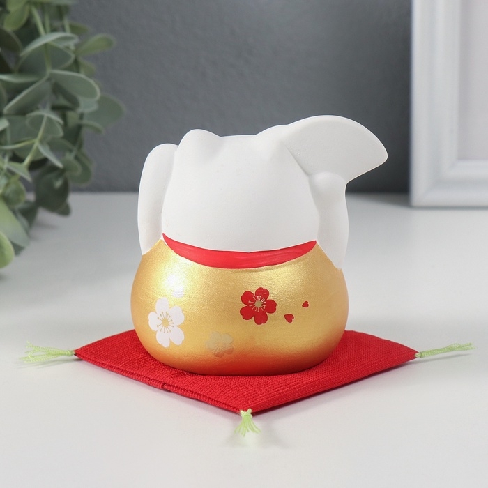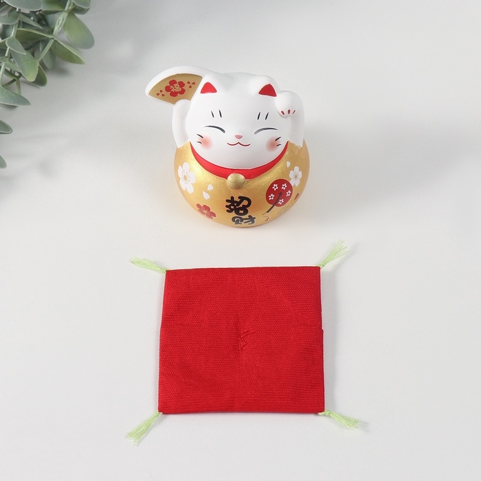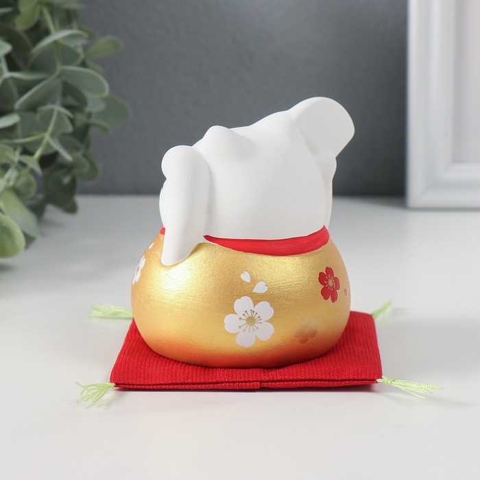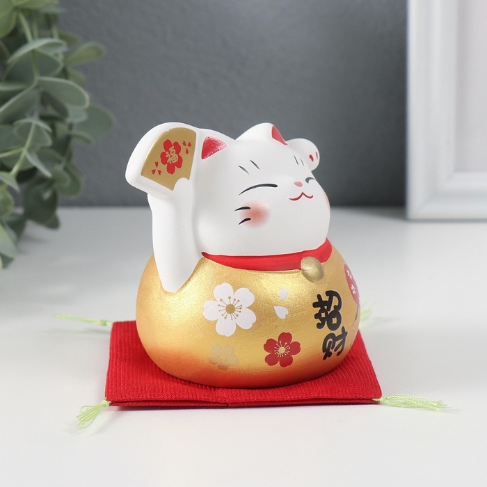 Сувенир керамика "Кот Манэки-нэко с веером" золотой 8х8х8,5 см