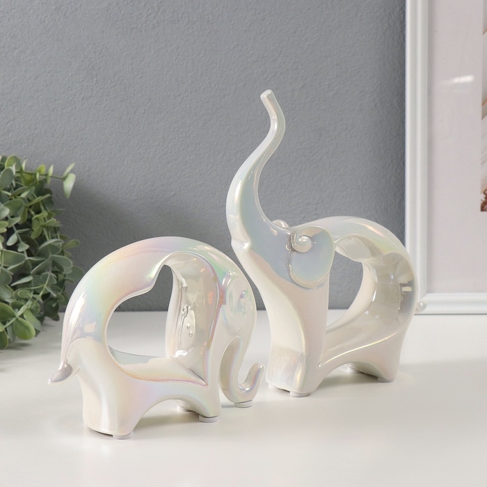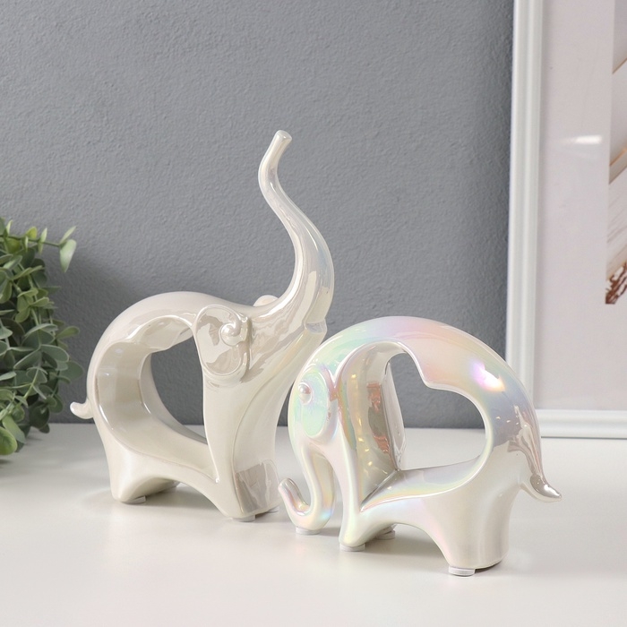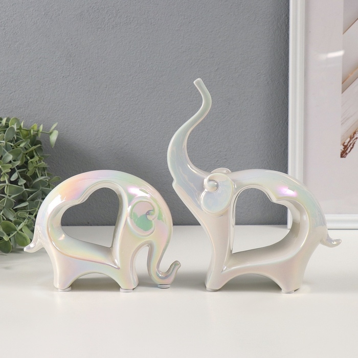 Сувенир керамика "Слоники с сердечком" перламутр набор 2 шт h=12 см 6х17х22 см