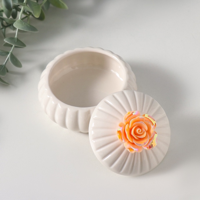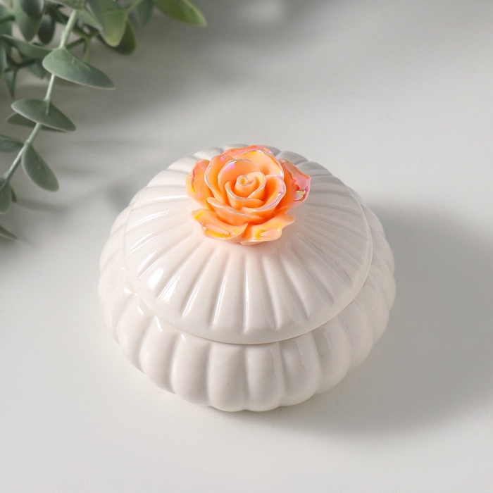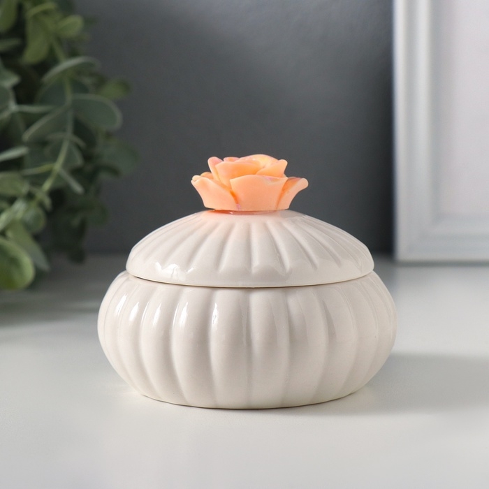 Шкатулка керамика "Цветок розы" персик перламутр 7,5х7,5х6,5 см